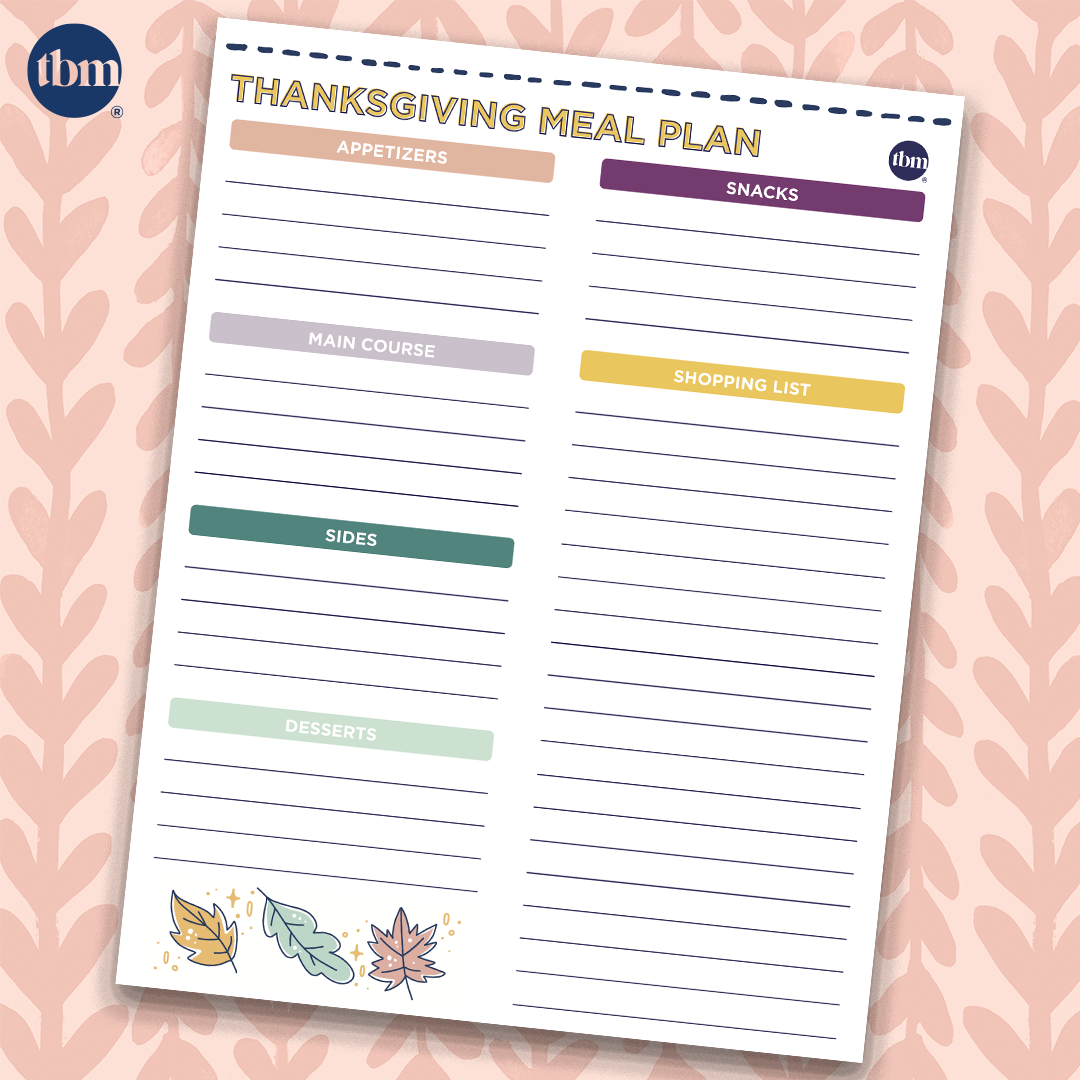 Get ready for Thanksgiving with this free printable Thanksgiving meal plan — a simple way to organize your dishes and ingredients for an easy, stress-free holiday!